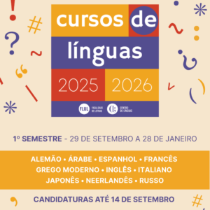 Destaques, Destaques 2Há 5 mesesCandidaturas até 14 de setembro para os cursos de 1.º semestre do Centro de Línguas da FLUL