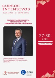 O curso intensivo “Fragmentos de um Direito Administrativo”, lecionado pelo Professor Marcos Augusto Perez, da Universidade de São Paulo, realiza-se entre os dias 27/04/2026 e 30/04/2026, das 11h00 às 13h30.
