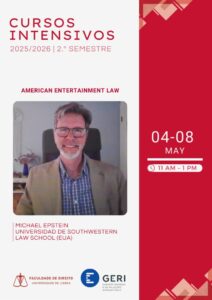 The intensive course “American Entertainment Law”, taught by Professor Michael Epstein, from the Southwestern Law School, will take place between 04/05/2026 and 08/05/2026, from 11 a.m. to 1 p.m.