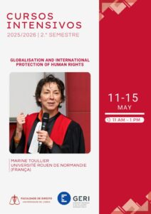 O curso intensivo de “Globalization and International Protection of Human Rights”, lecionado pela Professora Marine Toullier, da Université Rouen de Normandie, realiza-se entre os dias 11/05/2026 e 15/05/2026, das 11h00 às 13h00.
