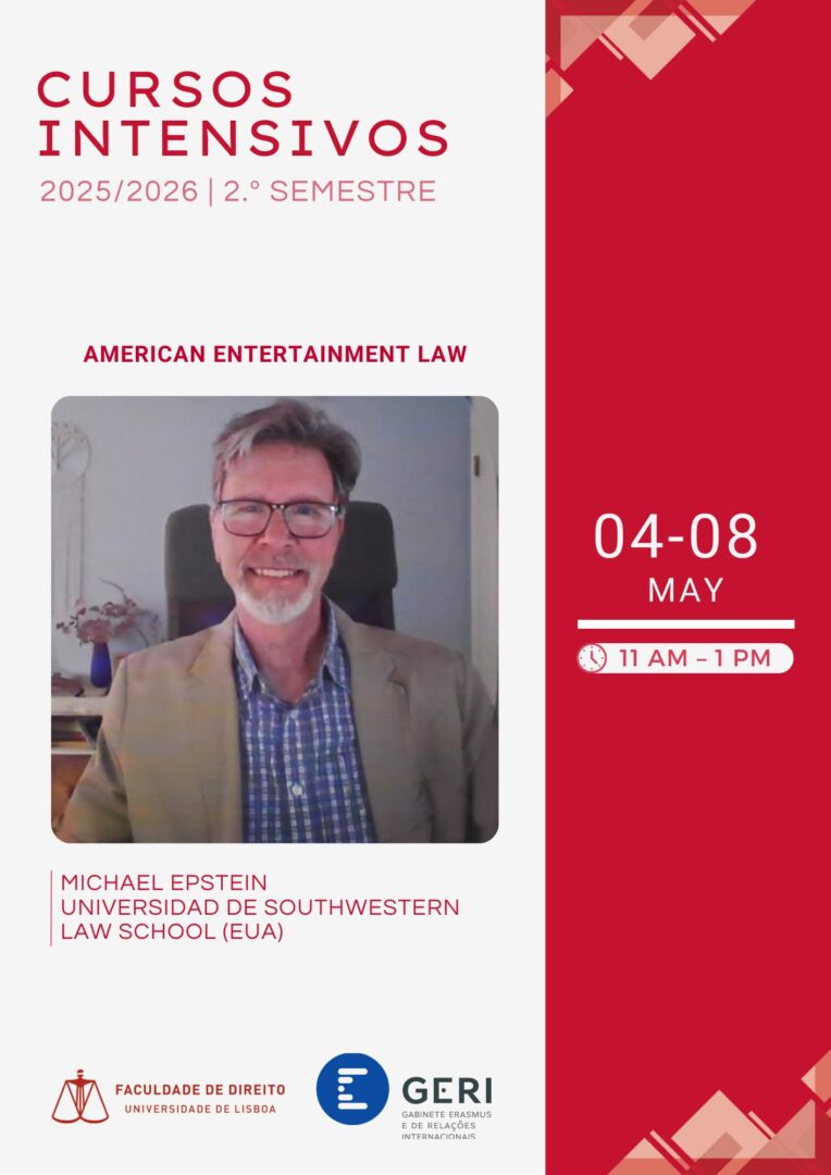 The intensive course “American Entertainment Law”, taught by Professor Michael Epstein, from the Southwestern Law School, will take place between 04/05/2026 and 08/05/2026, from 11 a.m. to 1 p.m.