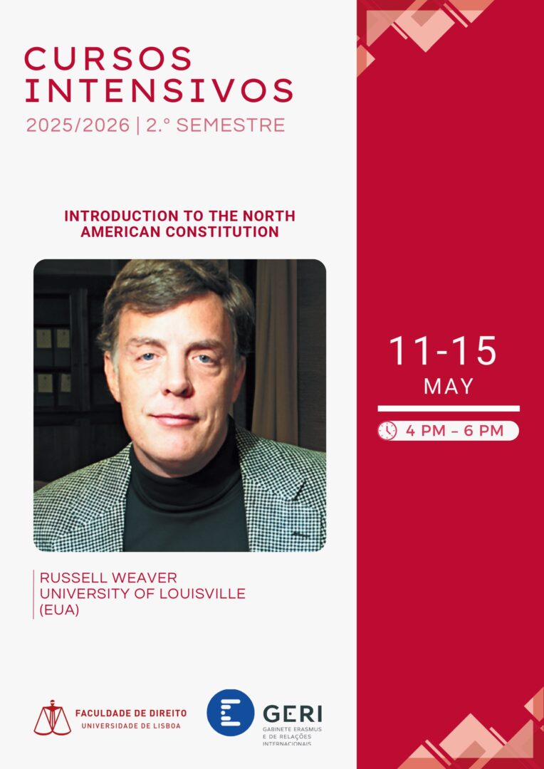 The intensive course “Introduction to the North American Constitution”, taught by Professor Russell Weaver, from the Louis D. Brandeis School of Law, University of Louisville, will take place between 11/05/2026 and 15/05/2026, from 4 p.m. to 6 p.m.