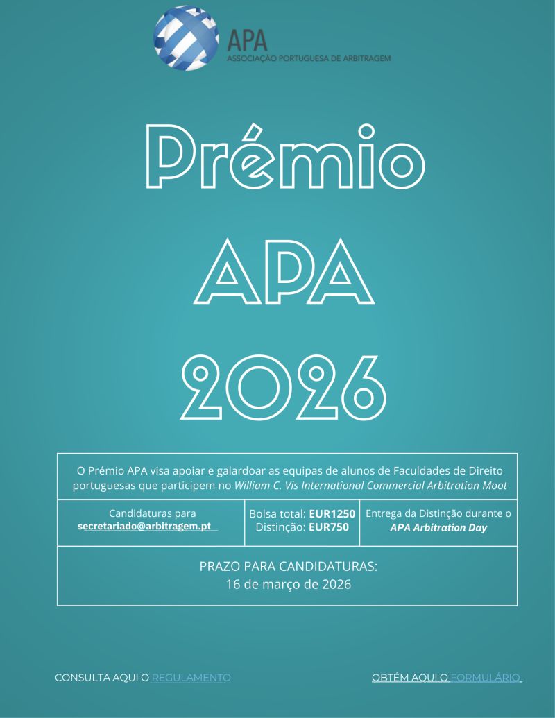 No ano de 2022, a Direção da APA Associação Portuguesa de Arbitragem decidiu criar um prémio (Prémio APA) destinado a apoiar e a galardoar as equipas compostas por alunos de Faculdades de Direito portuguesas (Equipas) que participem no Willem C. Vis International Commercial Arbitration Moot, também conhecido como Vis Moot (Competição).