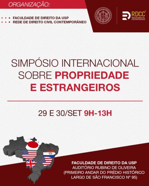 O Professor José Bonifácio Ramos participará no Simpósio Internacional sobre Propriedade e Estrangeiros, a realizar nos próximos dias 29 e 30 de Setembro, na Faculdade de Direito da USP, cidade de São Paulo.