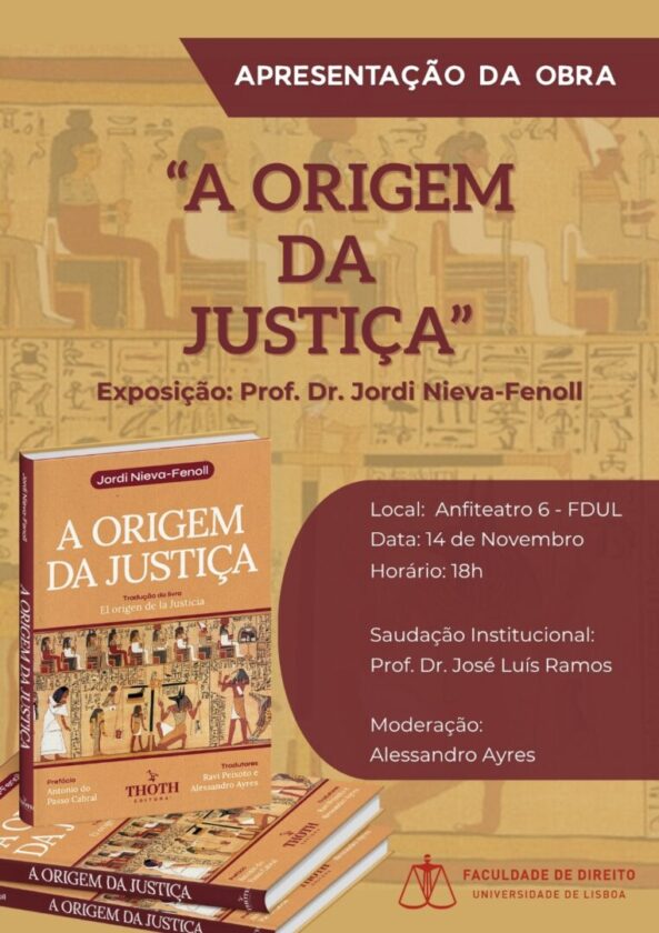 Decorrerá o lançamento do Livro “A Origem da Justiça”, do Professor Doutor Jordi Nieva Fenoll, no dia 14 de novembro de 2025 às 18h, no Anfiteatro 6 da FDUL.